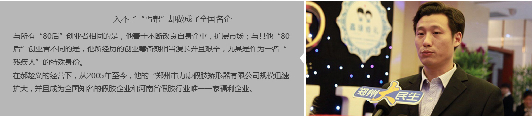鄭州市力康假肢矯形器有限公司(簡稱力康),是一家專業(yè)從事假肢矯形器的設計、研發(fā)、制作及裝 配的專業(yè)機構。成立于1992年是河南省唯一一家福利企業(yè)。力康下設業(yè)務部、技術部、住院部、康復 部、售后服務部,并配有現(xiàn)代化的裝配車間和功能齊全的訓練大廳,為殘疾朋友康復訓練提供了可靠 保障。總經理穿戴假肢多年,有著豐富的臨床經驗和親身體會;多年來,力康已為全國幾十萬名殘疾 朋友安裝上舒適、美觀、耐用的假肢和矯形器具,使他們更大限度地恢復了正常的工作和生活?!爱a 品即人品”的質量理念、先進的技術、實惠的價格、完善的售后服務是力康取勝的法寶……